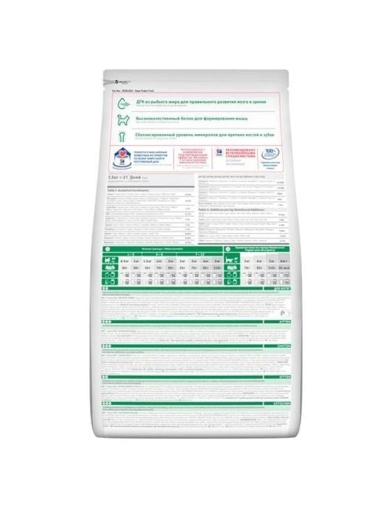 - هيلز طعام جاف يضم مجموعة من المعادن الضرورية كالكلسيوم والفوسفور للمحافظة على صحة الأسنان وقوة العظام.